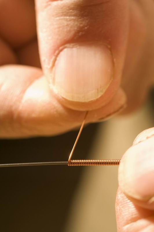 Basssaiten werden von Werner Alder in Handarbeit individuell für das jeweilige Instrument angefertigt.